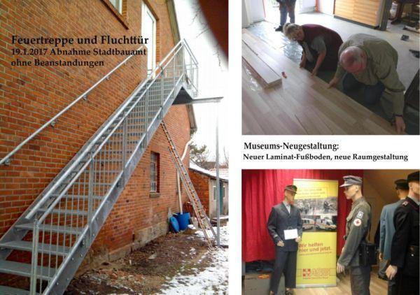 Nachdem alle Auflagen des Bauamtes erfüllt wurden – Bau der Feuertreppe und Notausgang – sowie marode Elektroinstallationen auf den erforderlichen Stand gebracht wurden, konnten die Ausstellungsräume unseres Museums wieder „auf Vordermann“ gebracht werden.