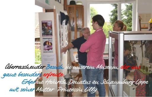 Seit der offiziellen Eröffnung unseres Museums im Mai durften wir Besuchergruppen, wie z.B. den Landfrauenverein, verschiedene Altersabteilungen von Feuerwehren aus der Nachbarschaft – z.B. Wendthagen -, die SPD-Fraktion des Schaumburger Kreistages und andere Gäste, deren Besuch uns ganz besonders erfreute, begrüßen. Erbprinz Heinrich Donatus zu Schaumburg-Lippe mit Mutter, Prinzessin Lilly, besuchten uns während der Vorbereitungen der Rallye quer durch Eurasien. Besondere Bedeutung hat dabei, dass Erbprinz Heinrich Donatus als Schirmherr des DRK die Tradition seiner Familie fortsetzt. Die DRK-Bereitschaft teilt sich mit uns das Gebäude der ehemaligen Zivilschutz-Unterkunft in der Scheier Straße.