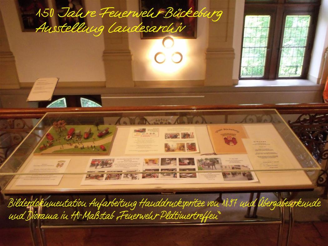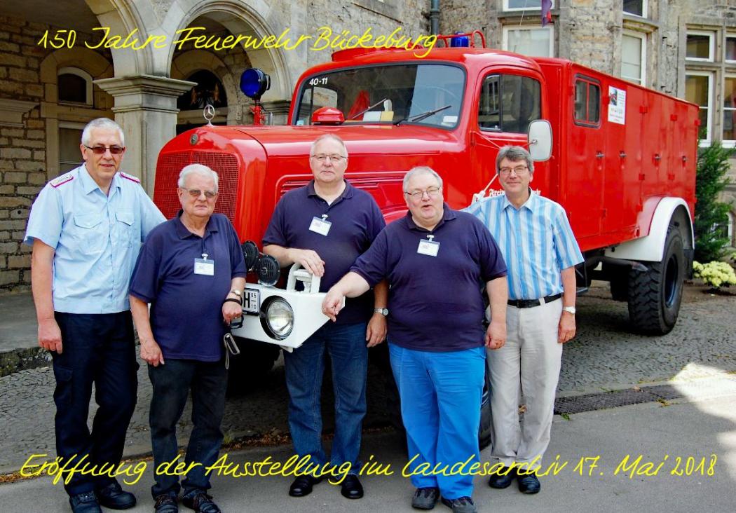 Im Sommer 2018 wird es in Bückeburg ein besonderes Ereignis unter den ehrenamtlich tätigen Helfern geben: Die Freiwillige Feuerwehr Bückeburg wird ihren 150. Geburtstag feiern. Verein und Museum bereiten sich für ein das Jubiläum begleitendes Programm vor. Im Juni, dem Monat der Gründung der Feuerwehr im Jahr 1868, wird der Start einer mehrwöchigen Ausstellung im Niedersächsischen Landesarchiv/Staatsarchiv in Bückeburg im Ostflügel des Schlosses sein. Historisches Bildmaterial, Urkunden und Berichte von der Gründung bis ca. 1990 wurde von Vereinsmitgliedern aufgearbeitet und dem Archiv zur Verwahrung übergeben und hier zu sehen sein.