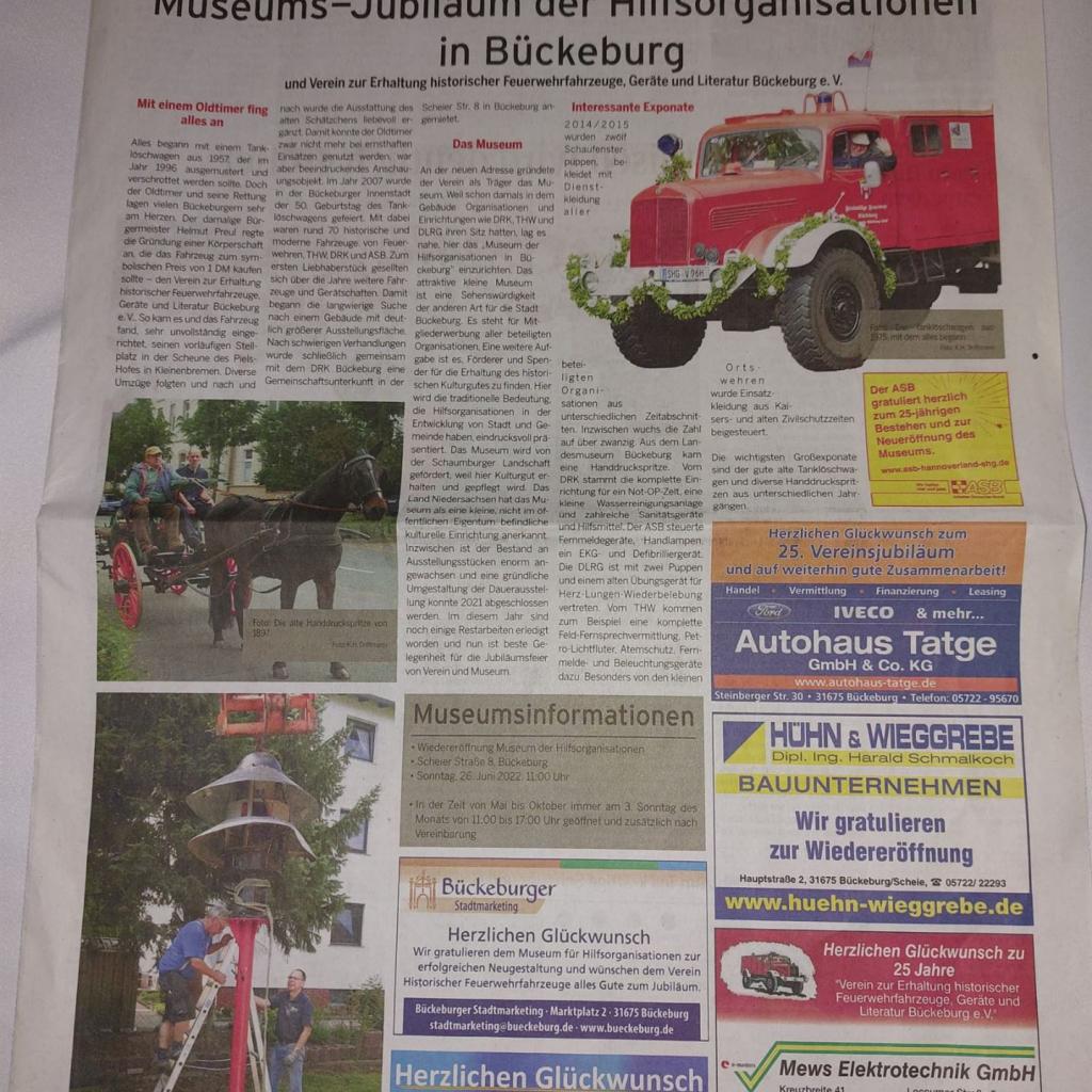 Der Verein dankt der Firma rsp GmbH für diese fachgerechte und sehr entgegenkommende Unterstützung. Die in Kürze wieder hergestellte Betriebsfähigkeit ist ein großer Schritt zum Ziel der langfristigen Erhaltung dieses Stücks Feuerwehrgeschichte der Stadt Bückeburg.