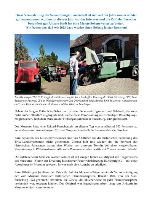 Die Museumsmannschaft dankt allen Besuchern und Unterstützern für Interesse und Förderung.