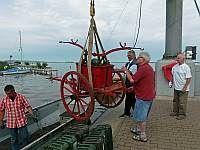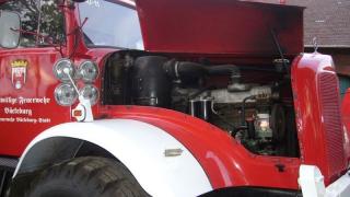 Wie in den vergangenen Jahren wurde mit dem Oldtimer an der Autoschau in der Innenstadt teilgenommen, verstärkt durch das Exponat Handdruckspritze Holzhausen aus dem Museum. Dieses voll funktionsfähige historische Gerät ist in einem solchen Zustand, dass eine Überführung auf der Straße möglich ist. Bei zwei anderen Geräten dieser Art im Museumsbestand müssen selbst bei kurzen Wegen erhebliche Schäden befürchtet werden. Besonders am Sonntag konnte wieder ein sehr guter Zulauf an unserem zum Stand umfunktionierten LKW-Anhänger verzeichnet werden. Unsere Kameradin Brigitte Coesfeld hat wieder aus Stoff mit Feuerwehrmotiven die zweckmäßigen Taschen geschneidert, die von unseren Besuchern gern gekauft werden. Der Erlös wird für die Erhaltung unseres 60 Jahre alten Mercedes-Tanklöschwagen verwendet.