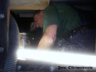 Auf den Fotos ist René Selig im Tank bei der Arbeit zu sehen. Das senkrechte Rohr auf dem mittleren Foto ist der Tanküberlauf. Die Löcher markieren die Stellen, an denen die Schwall- oder Schlingerbleche eingesetzt werden, die beim Fahren ein Aufschaukeln des Fahrzeugs durch die Flüssigkeitsbewegungen abfangen sollen und außerdem den Tank stabilisieren (3 mm starke U-Stahl-Profilbleche).