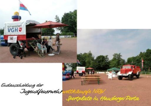 Die größte dieser Veranstaltungen war die Endausscheidungen der Jugendfeuerwehrwettkämpfe für Nordrhein-Westfalen auf dem Sportplatz in Hausberge, gleichzeitig Qualifikation zur Teilnahme an der Deutschen Meisterschaft in Brandenburg. Unser Mitglied, die Feuerwehr Holzhausen II/Porta, war Ausrichter der Veranstaltung und hatte uns zur Ergänzung des Rahmenprogramms eingeladen.