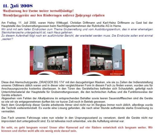 Diese Bearbeitung des Tanks ist eine Spende der Fa. rsp, einem Fachbetrieb nach § 19 WHG für Versiegelungen und Beschichtungen. Dadurch wird ermöglicht, den Wassertank wieder zu nutzen, um beispielsweise Vorführungen mit dem Fahrzeug bei entsprechenden Veranstaltungen in das Programm einzufügen. Es ist seit langer Zeit ein Ziel des Vereins, mit zur Epoche der Indienststellung 1957 des Fahrzeugs passender alter Dienstkleidung die alte Technik realistisch und praktisch zu zeigen. Man könnte auch sagen, dass der Veteran quasi wieder ein einsatzfähiges Fahrzeug ist, denn die eingebaute Pumpe hat z.B. im Herbst 2009 beim Füllen eines Dampfloktenders auf dem Bahnhof Bückeburg unter Verwendung eines Hydranten gezeigt, dass sie uneingeschränkt betriebsbereit ist.