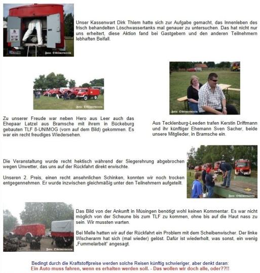 Als Vorsitzender danke ich an dieser Stelle ganz besonders Jochen Harting, Helmut Herrmann, Brigitte Coesfeld, Heinz Wittkugel, Sylvia Bonacker und Boris Mühlhausen, dem THW Bückeburg, Arndt Driftmeier in Evesen, den Kameraden der DRK-Bereitschaft, dem ASB und der Familie Wömpner für die Hilfe und Zusammenarbeit. Habe ich jemand vergessen?
